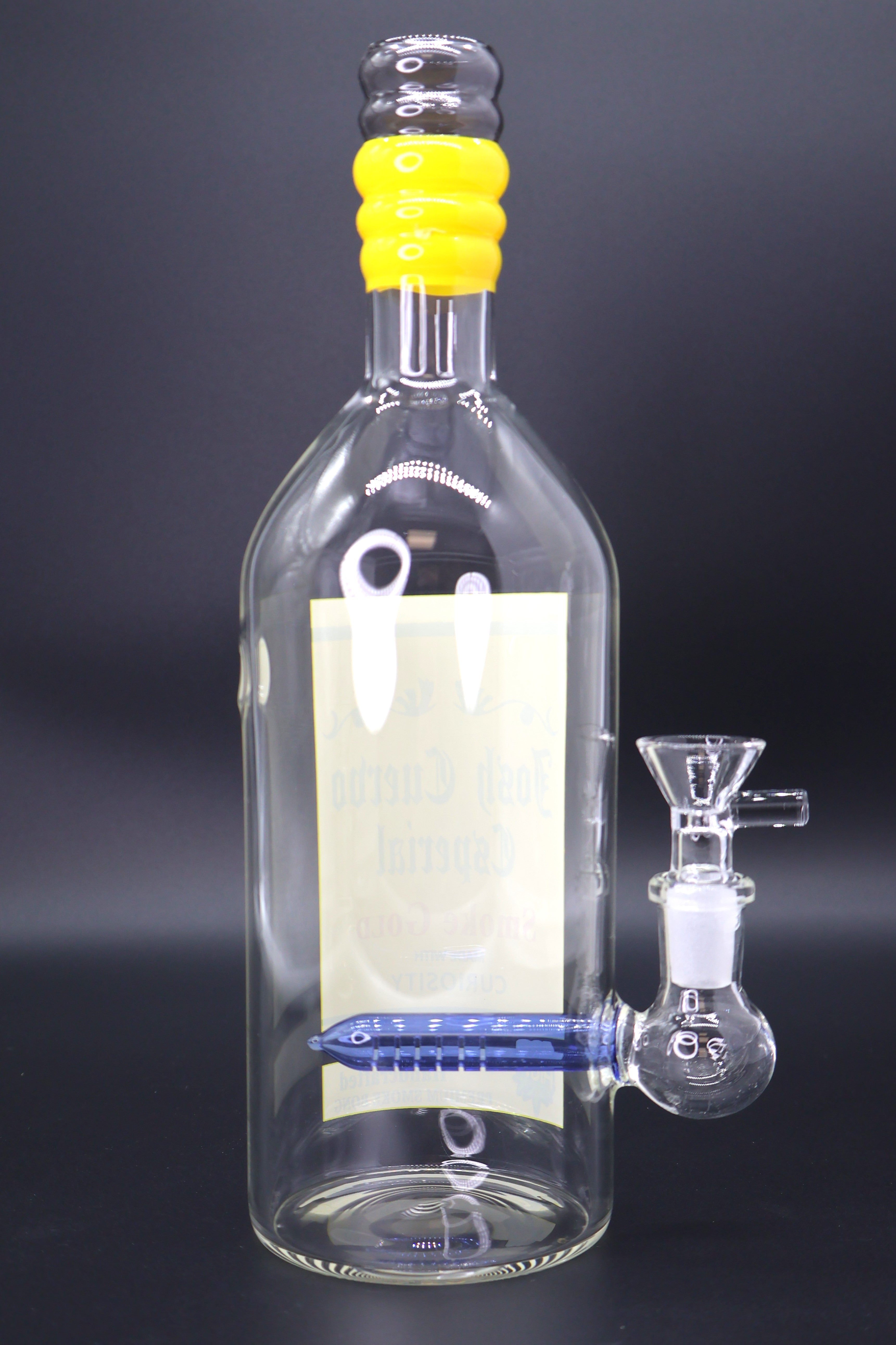 Enjoy a premium smoking experience with this 9" liquor bottle-styled glass beaker bong, combining elegance, durability, and superior functionality. Perfect for those who appreciate style and substance in their smoking accessories.